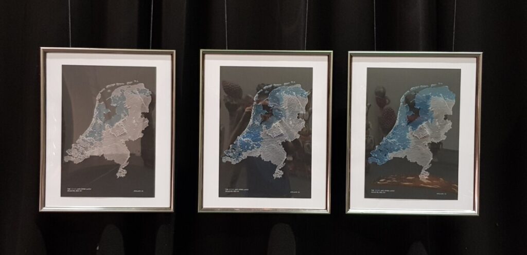 The trilogy plot “nether and upperlands 0 meter, 1 meter and 2 meter sea water level” is printed in limited edition of 10 times 3 on A3. It is for sale at €300. Send a DM for purchase.